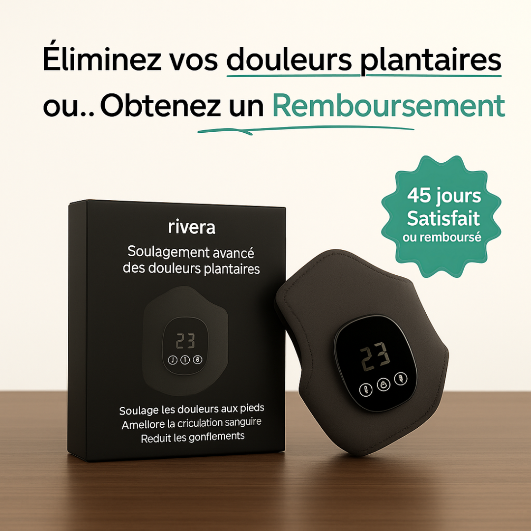 Nous sommes tellement convaincus que vous aimerez le masseur Rivera 3-en-1 que nous vous offrons une garantie de remboursement de 45 jours. S'il ne vous convient pas, contactez-nous à l'adresse support@fr-rivera.com et nous vous rembourserons intégralement, sans poser de questions !